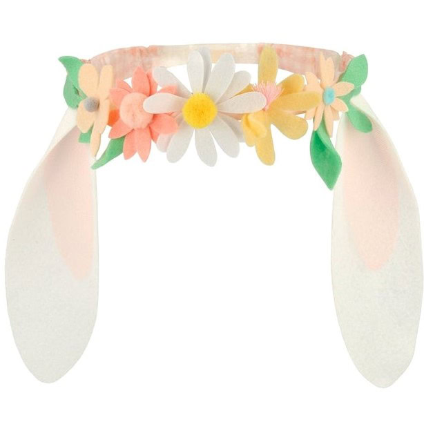 Adorabili orecchie da coniglietto, perfette per la tua festa di Pasqua! Sono splendidamente realizzate in feltro, con tulle rosa sulle orecchie e dolci pompon e nappe sui fiori.