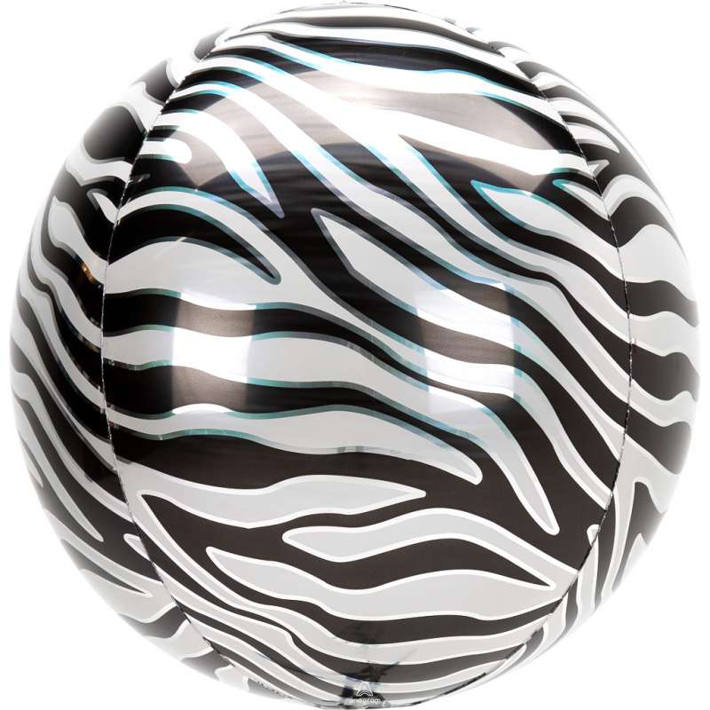 Palloncino sferico in Mylar Zebrato, colori Bianco, Nero e rifiniture Argento . E’ dotato di valvola autochiudente e misura 15″ x 16″ (38cm x 40cm). La confezione contiene un Palloncino. Il dettaglio perfetto per il tuo Party a tema Giungla!