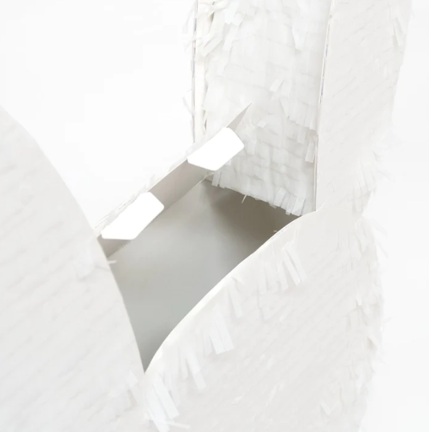 Splendida Piñata a forma di Coniglietto, splendidamente realizzata con frange di carta velina e decorata con nastri colorati.