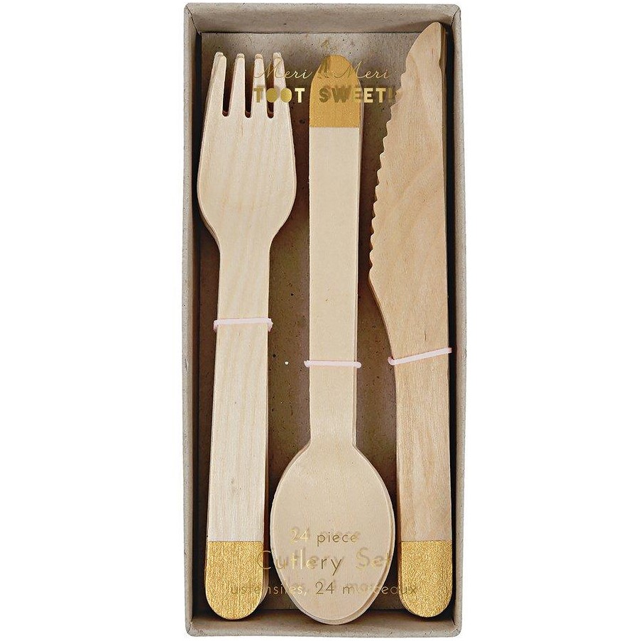 Con questo meraviglioso set di posate in legno stupirai tutti i tuoi invitati! Sono realizzate in legno di betulla pallido e dipinte di Oro.