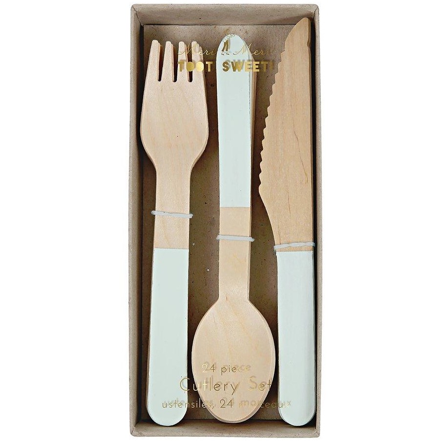 Con questo meraviglioso set di posate in legno stupirai tutti i tuoi invitati! Sono realizzate in legno di betulla pallido e dipinte di verde acqua.