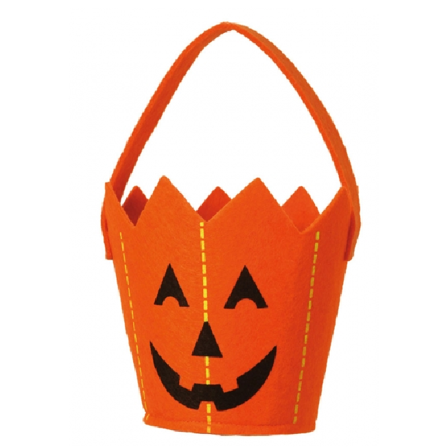 Dolcetto o scherzetto? Fantastico secchiello di halloween in feltro a tema zucca arancione con manico.