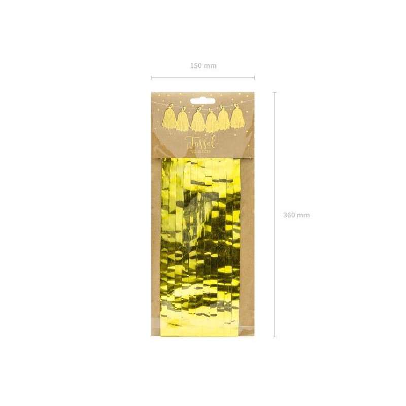 Ghirlanda con 12 ciuffetti Oro Metallizzato. Lunghezza 2 mt e altezza 30 cm. Il dettaglio glamour per un evento unico e raffinato!