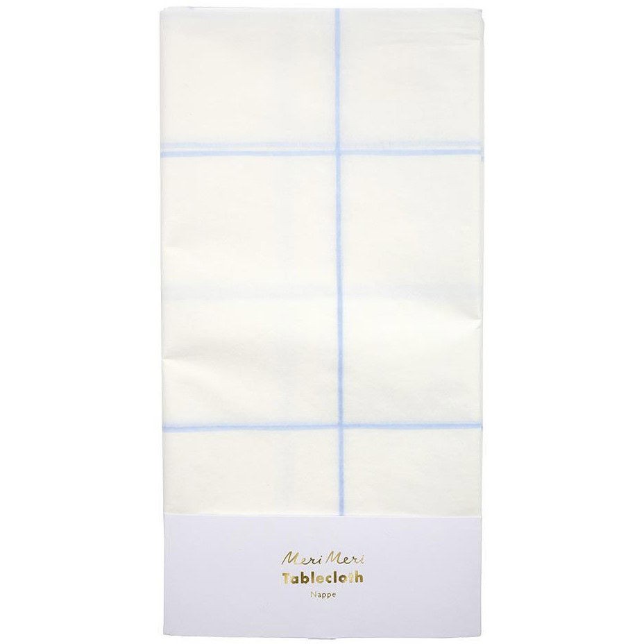 Tovaglia Bianca con Griglia Azzurra