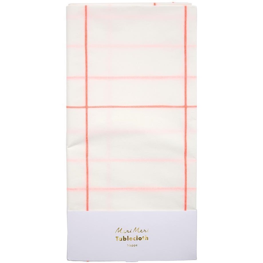 Tovaglia di carta Bianca con griglia colore Corallo, perfetta per il rendere ancora più speciale il tuo evento! Dimensioni prodotto: Dimensione piatta-2,6 x 1,4 m.