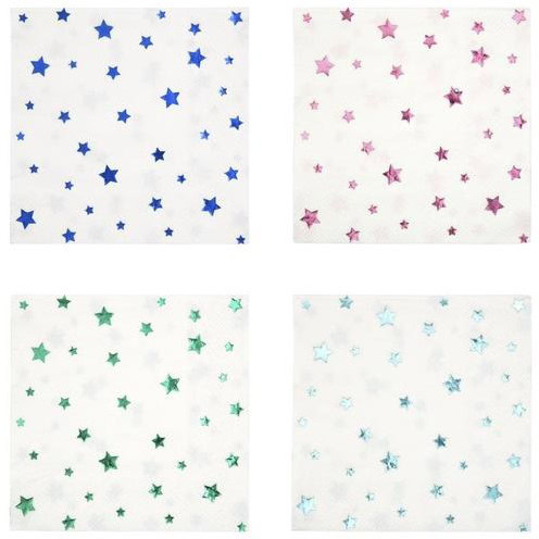 16 Tovaglioli Bianchi con Stelle Colori Misti